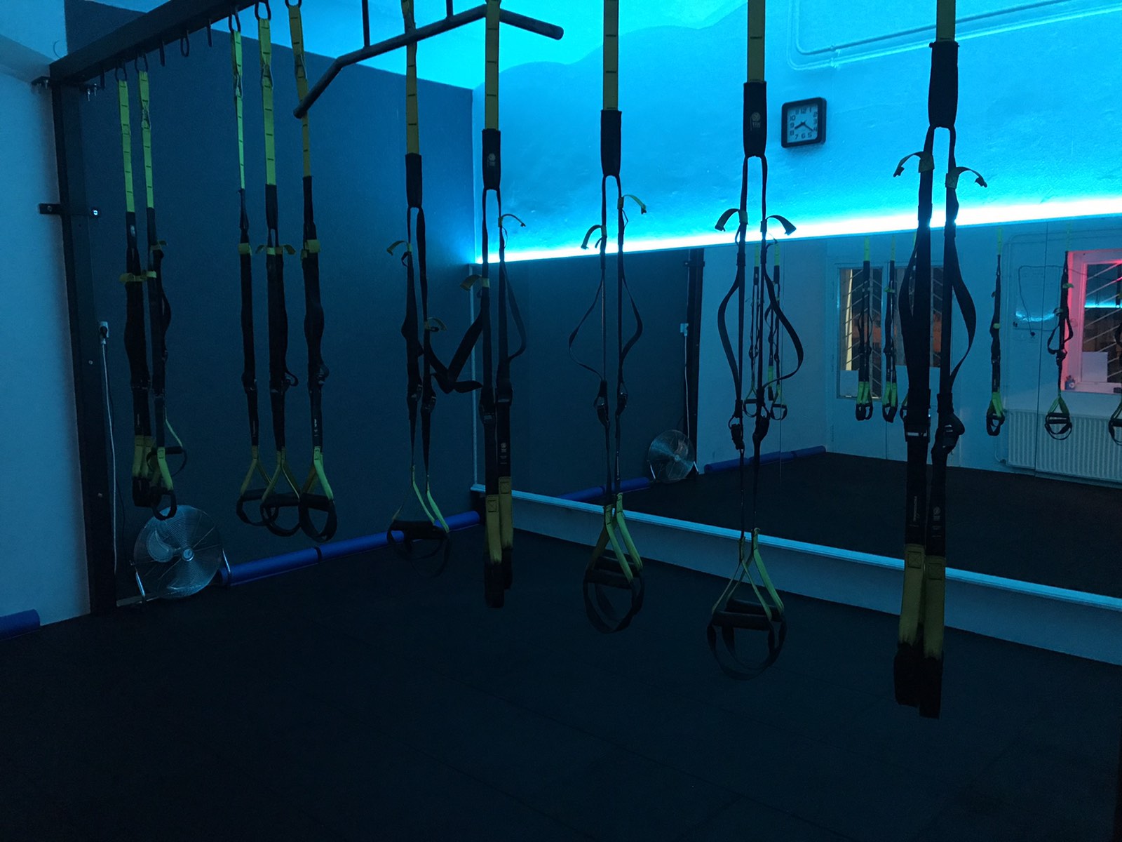 TRX és más csoportos edzésre használható helyiség, funkcionális eszközökkel
